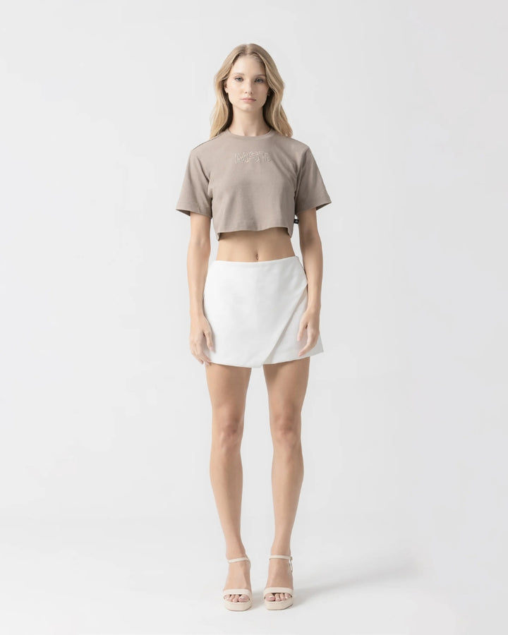 Amal es un crop top confeccionado en 100% algodón ultrasiliconado de alta calidad, diseñado con una silueta pequeña que realza la figura con sutileza y equilibrio.