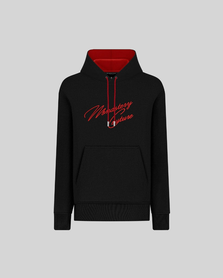 Nuestro hoodie Anfisa, cuenta con un práctico bolsillo canguro y en el frente presenta el texto en letra cursiva "Monastery Couture" bordada en hilo tono a tono con el cordón y el forro de capucha. Los puños y el fajón se presentan en el mismo tono de la prenda, agregando un toque de estilo único. La base textil es french terry 100% algodón peruano
