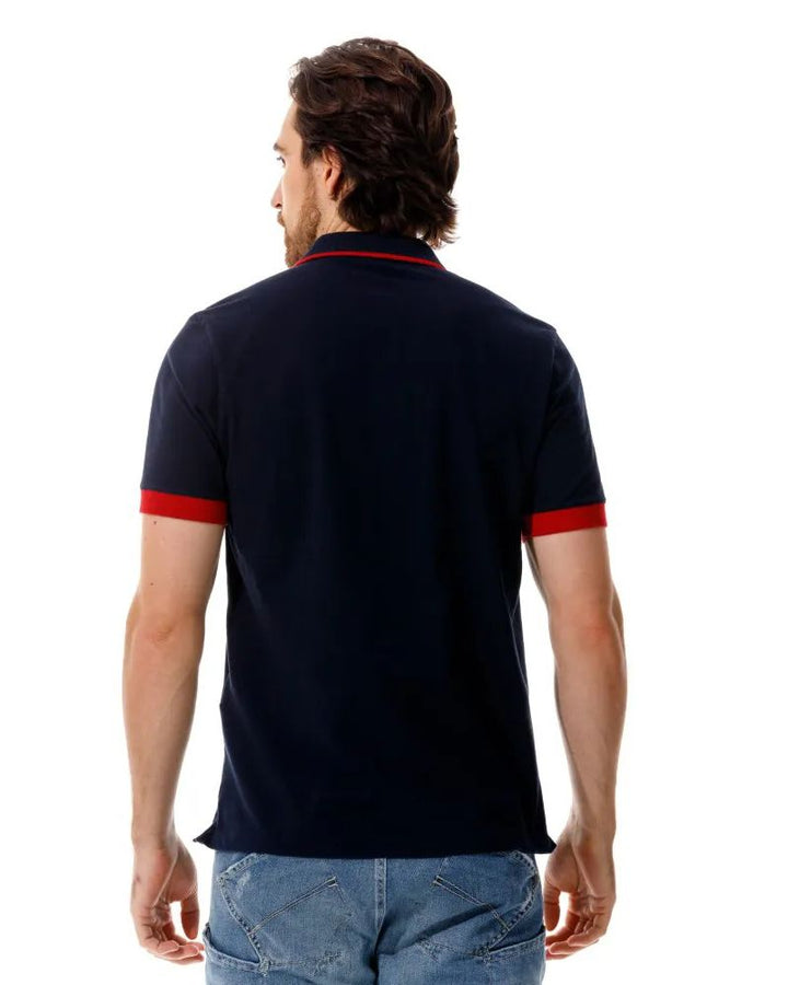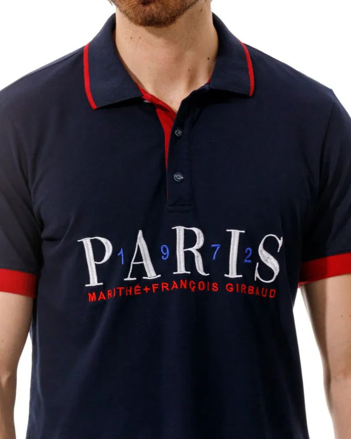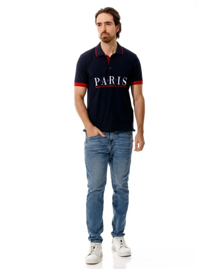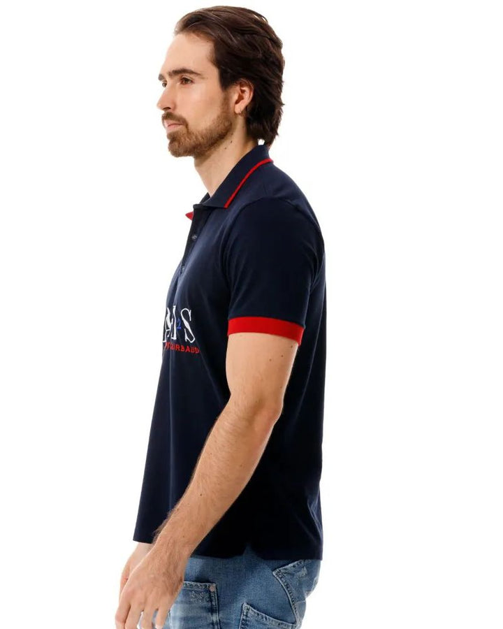 El modelo mide entre 1.80 y 1.85, la prenda superior es talla m y la prenda inferior es talla 32. Polo de botones contramarcados con cuello tejido y manga corta. Confeccionado en mezcla de algodón. Bordado en delantero.