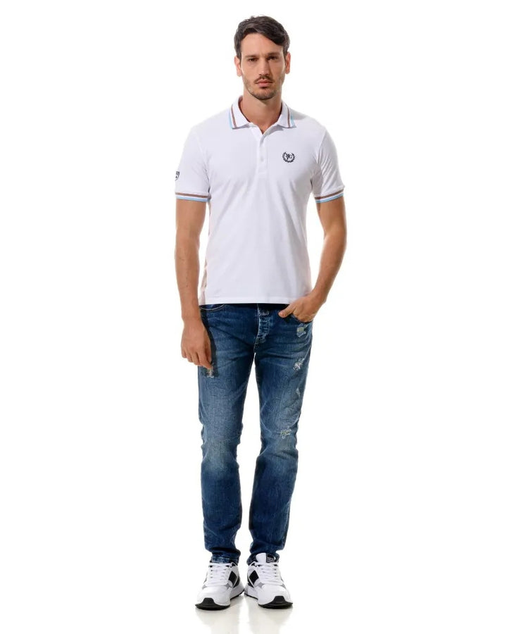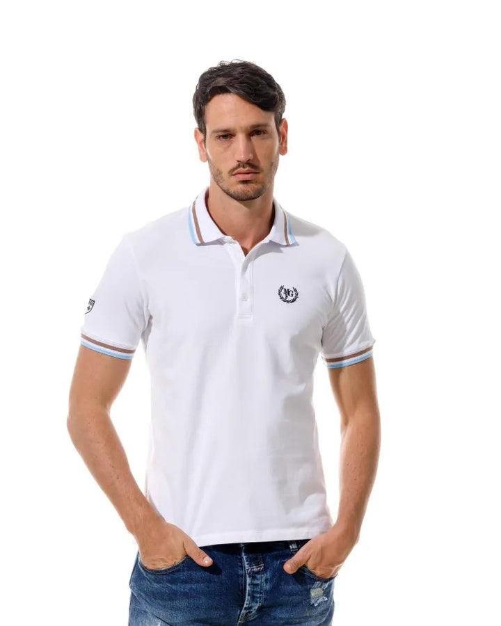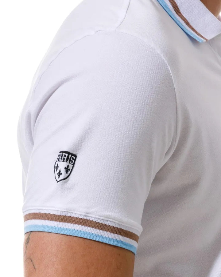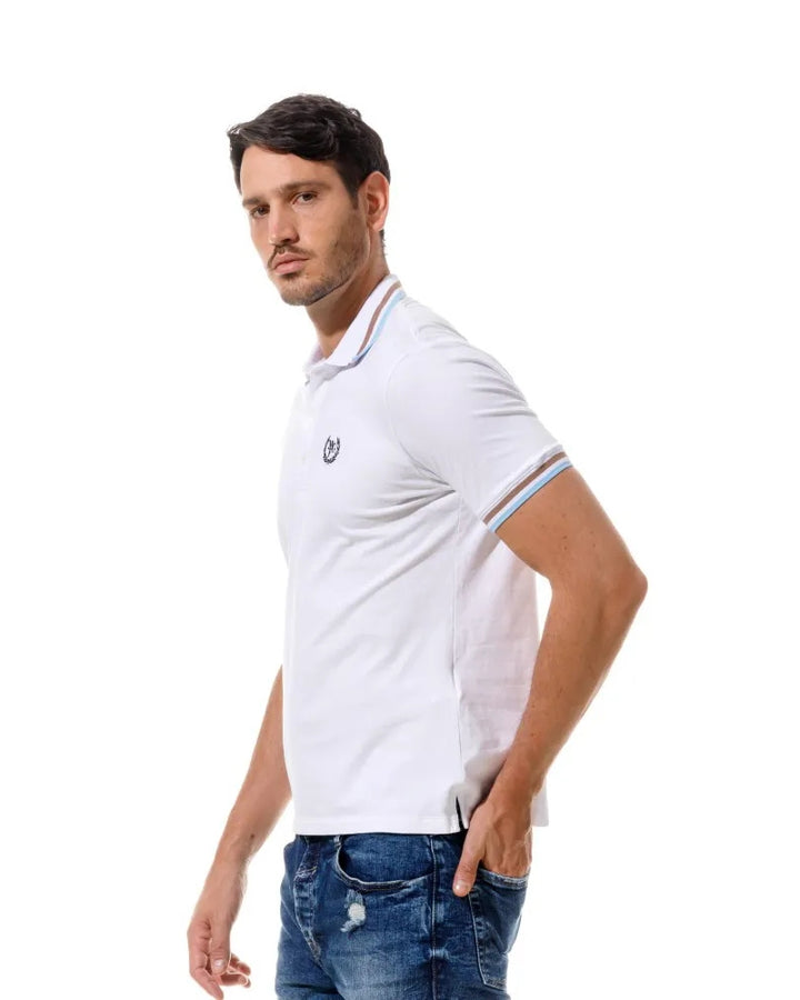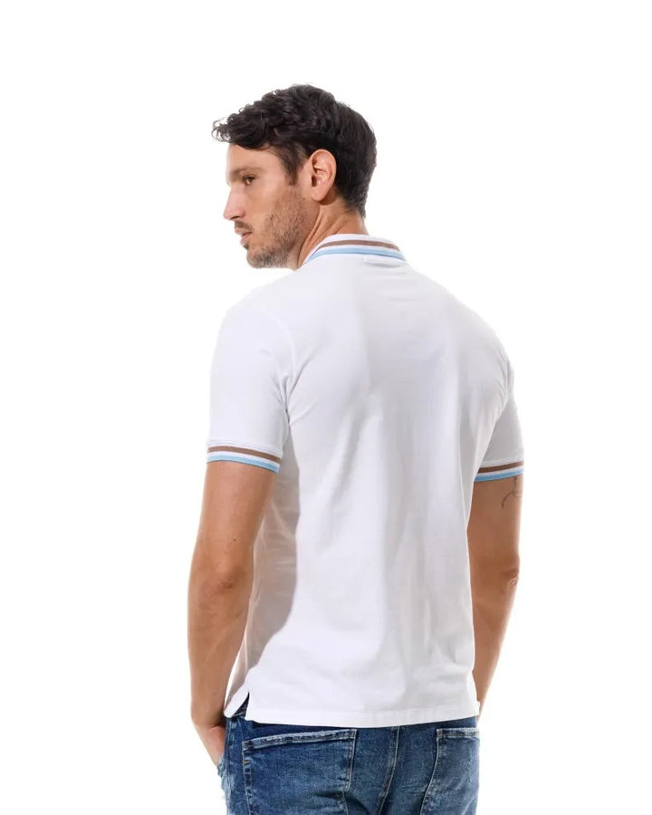 Polo de botones contramarcados con cuello tejido y manga corta. Confeccionado en mezcla de algodón. Bordado delantero en punto corazón y manga.