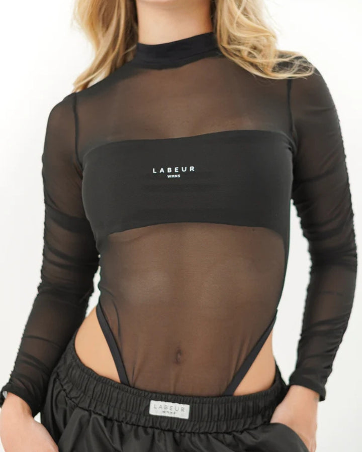El equilibrio perfecto entre sensualidad y elegancia. El Body Avignon combina malla elástica ligera con un top interno en licra para dar soporte y cubrir estratégicamente. Con cuello tortuga y mangas fruncidas, es una declaración de estilo.
