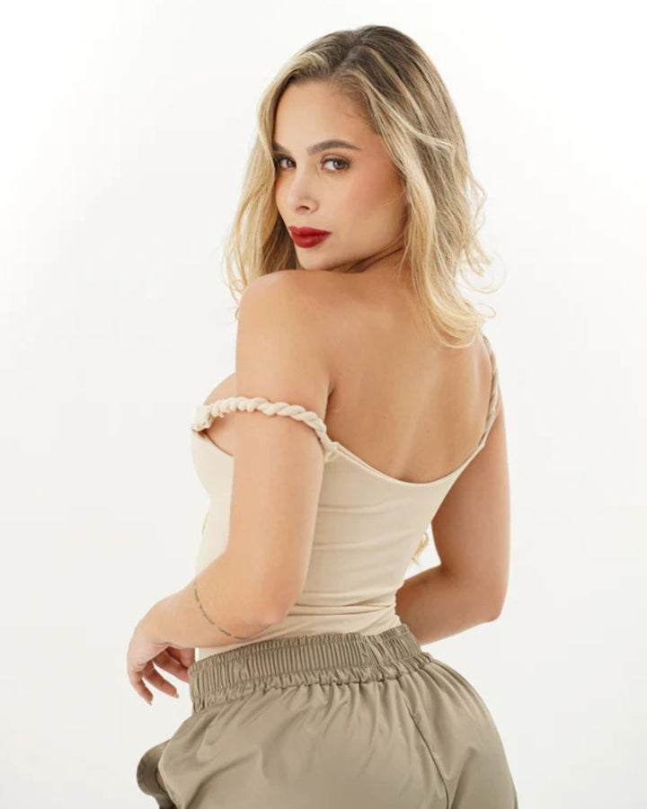 Minimalismo con un twist inesperado. El Body Cassis, confeccionado en licra mate a base de nailon, sorprende con tiras trenzadas con una silueta asimétrica y moderna. Sofisticado, sensual y versátil.