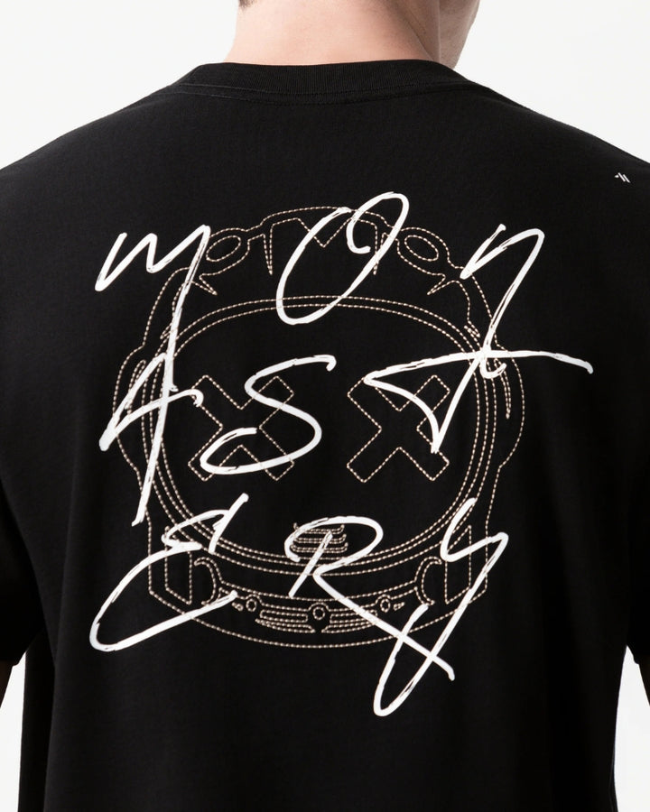 Buster es una T-shirt masculina confeccionada en 100% algodón ultra siliconado de alta calidad, que ofrece una textura suave, comodidad y estabilidad dimensional. Su silueta regular proporciona un ajuste equilibrado y estructurado. En el frente y la parte posterior, los artes se desarrollan en bordado tipo pespunte, una técnica que aporta textura lineal y definición en los trazos. Estos detalles se complementan con estampado en plastisol plano, logrando una cobertura uniforme y un acabado visualmente limpio. Una prenda que combina técnica, precisión y estilo contemporáneo.