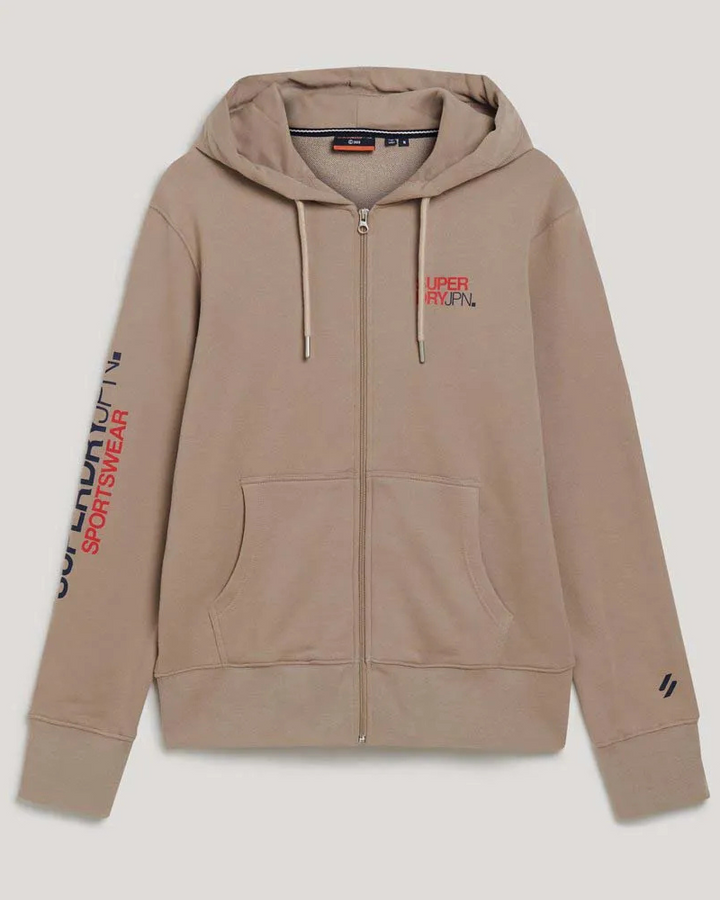 Esta cómoda y elegante sudadera con capucha es la prenda perfecta para llevar al gimnasio. Diseñada para ofrecerte una comodidad inmejorable, se trata de la elección perfecta para presumir de un look de diario de lo más desenfadado. Corte holgado: el corte que combina comodidad y estilo moderno, y que convierte este diseño en una prenda imprescindible en cualquier fondo de armario., Capucha con cordones de ajuste, Diseño con cremallera integral, Dos bolsillos exteriores, Bajo y puños de canalé, Amplio estampado gráfico y textual en la manga, Gráfico estampado en la parte delantera.