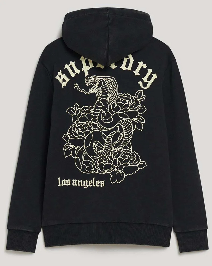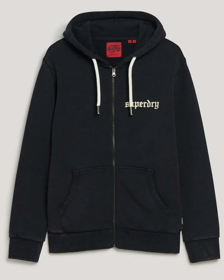 Esta sudadera con capucha atrevida y cómoda es ideal para esta temporada. Con un forro ligeramente cepillado y magníficos gráficos de tatuajes por toda la prenda, es perfecta para proporcionarte calidez con estilo durante todo el año, haga el tiempo que haga. Gracias a su corte relajado, es ideal para combinar con otras prendas y añadir un toque de estilo a tus looks de diario. Corte holgado: el corte que combina comodidad y estilo moderno, y que convierte este diseño en una prenda imprescindible en cualquier fondo de armario., Diseño con cremallera integral, Capucha con cordones de ajuste en contraste, Dos bolsillos exteriores con forro ligeramente cepillado, Forro ligeramente cepillado, Bajo y puños de canalé, Gráfico de texto de tatuajes en el pecho, Gráfico grande con efecto agrietado en la espalda, Etiqueta de la marca en el lateral .