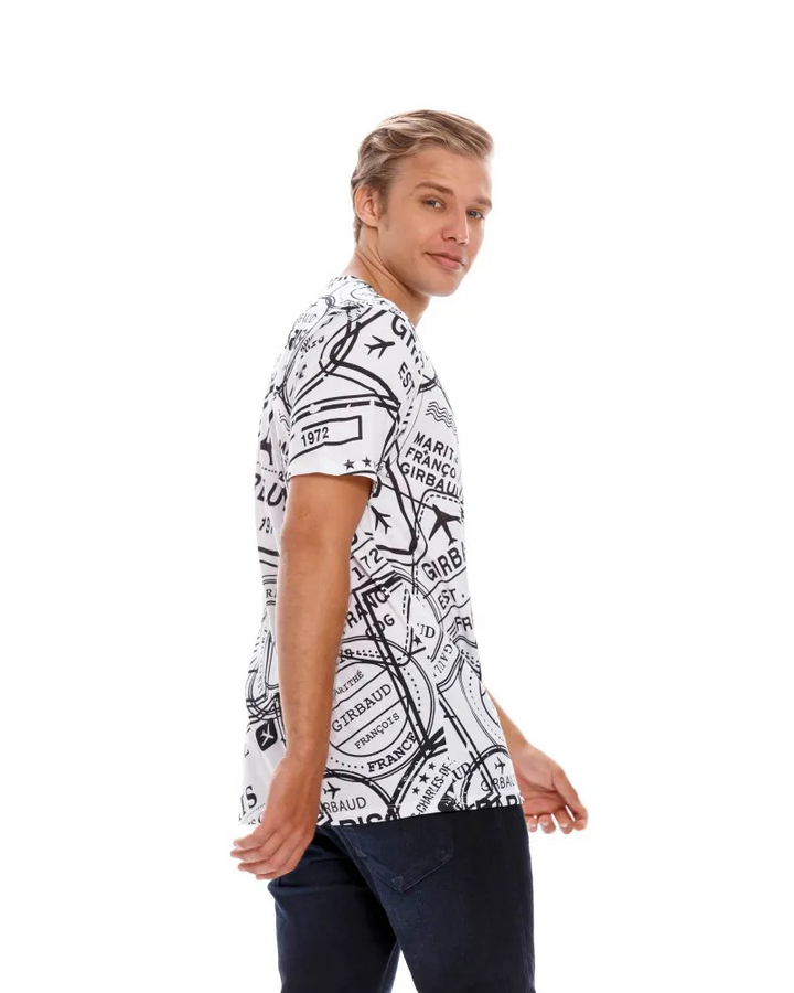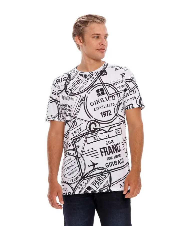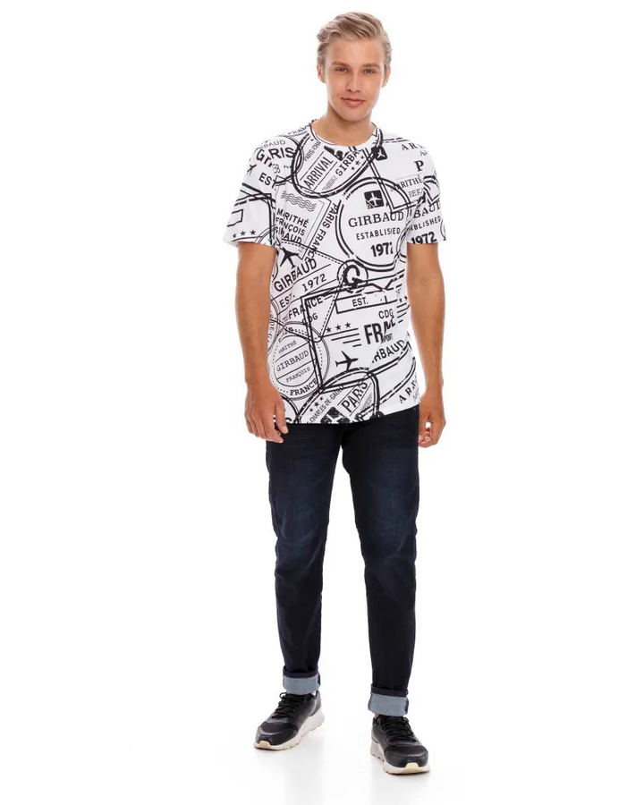 Camiseta Para Hombre Girbaud 3356 Referecia Gm1102240N000;El modelo mide entre 1.80 y 1.85, la prenda superior es talla m y la prenda inferior es talla 32.