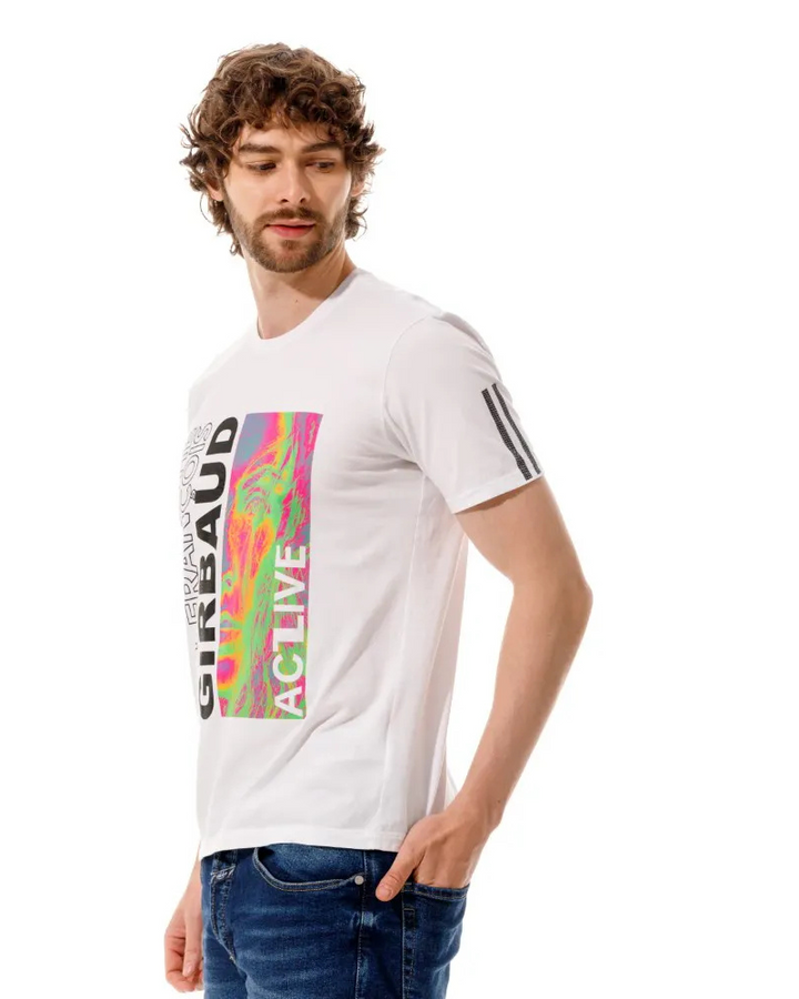 Camiseta con cuello redondo en rib y manga corta. Confeccionado en 100% algodón. Estampado en frente con técnica policromía.