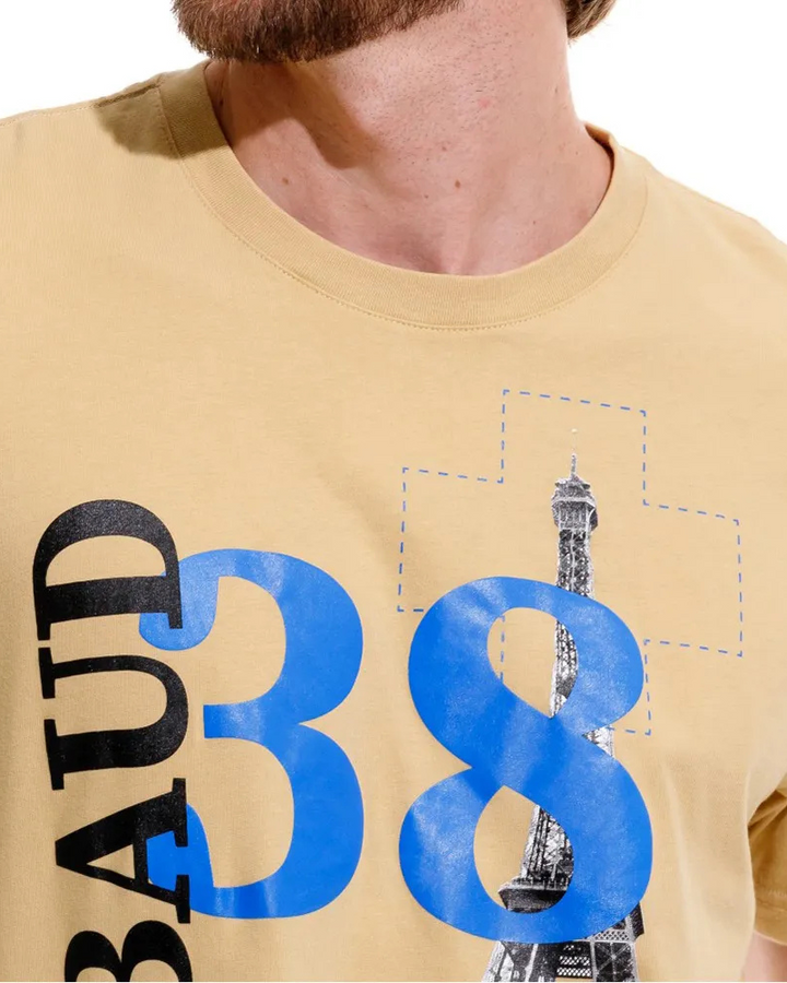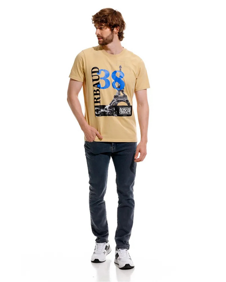Camiseta con cuello redondo en rib y manga corta. Confeccionado en 100% algodón de 180 gr. Estampada en frente en técnica plastisol.