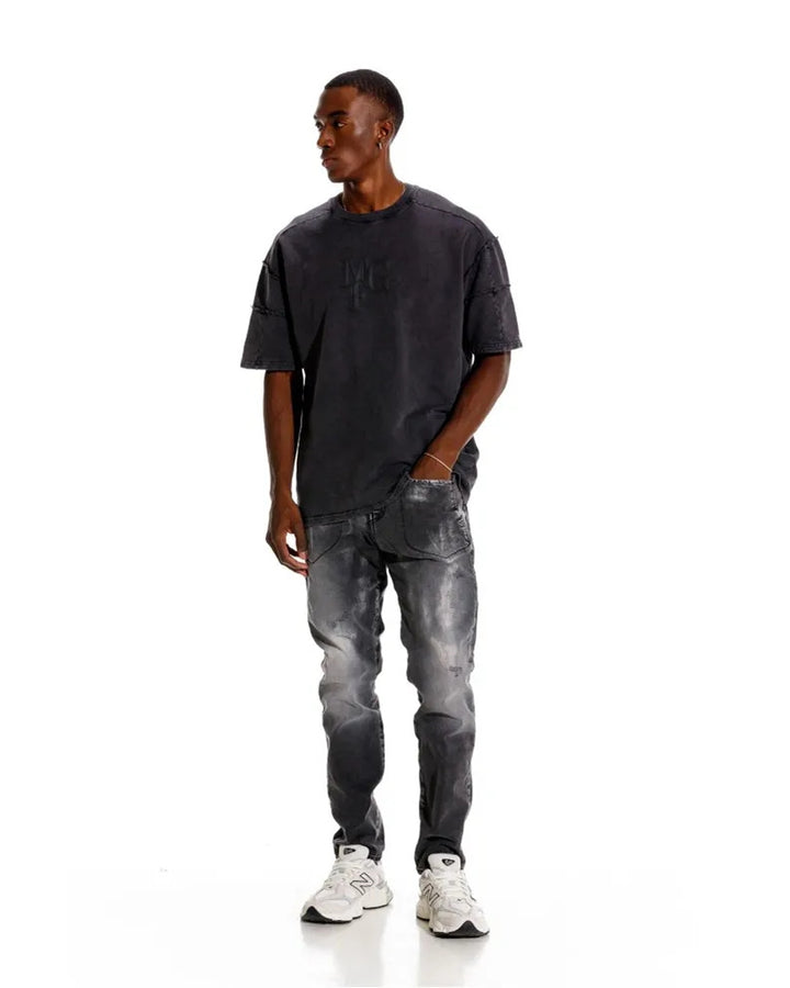 Camiseta Manga Corta Para Hombre Le Monarque Girbaud, El modelo mide entre 1.80 y 1.85, la prenda superior es talla m y la prenda inferior es talla 32.