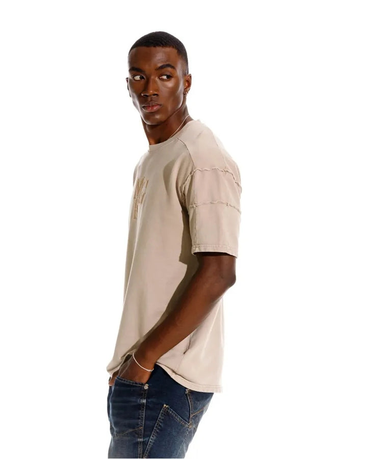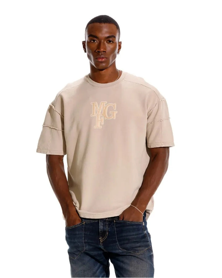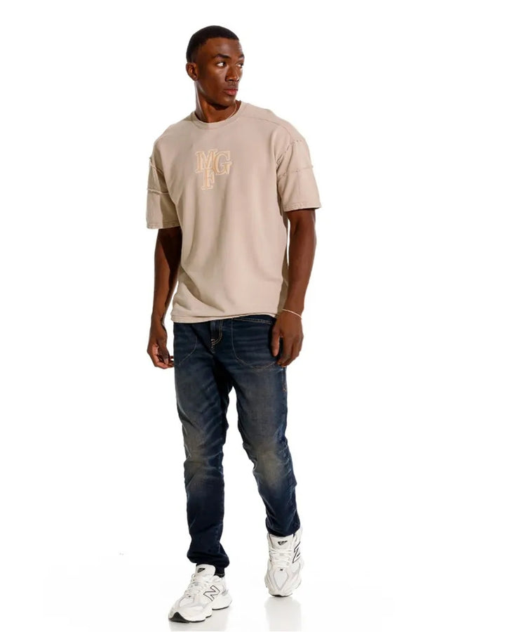 Camiseta Manga Corta Para Hombre Le Monarque Girbaud, El modelo mide entre 1.80 y 1.85, la prenda superior es talla m y la prenda inferior es talla 32.