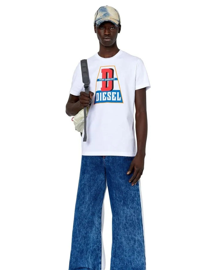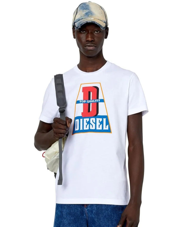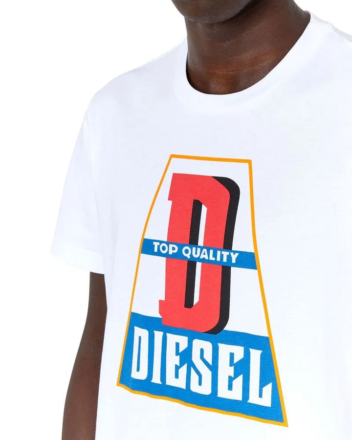 Camiseta de fit entallado confeccionada en suave tejido de algodón. este modelo para hombre lleva un estampado «top quality» de Diesel en el pecho.