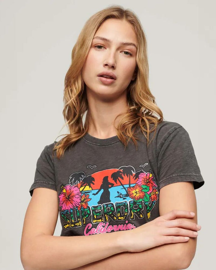 Camiseta Manga Corta Para Mujer Cali Sticker Fitted Tee