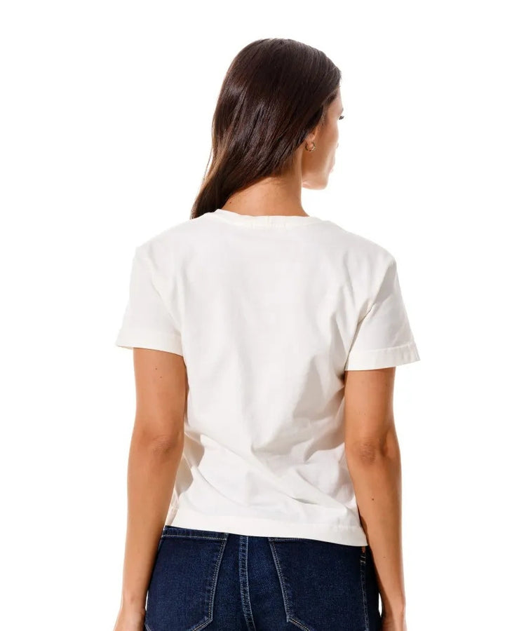 Camiseta con cuello redondo en rib, manga corta. Confeccionada en algodón de 180gr. Estampado en alta en parte delantera.
