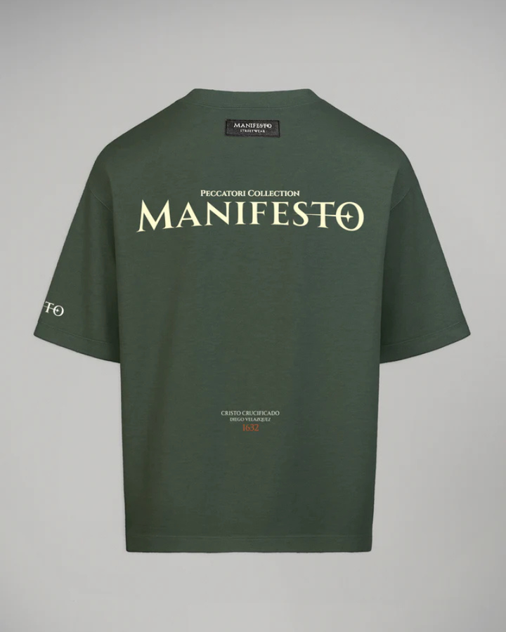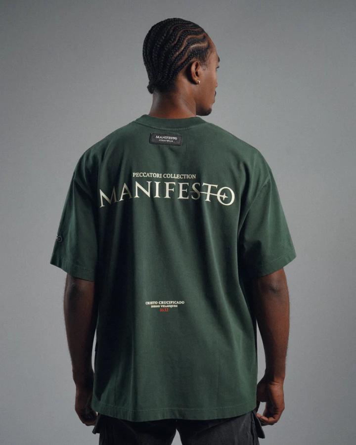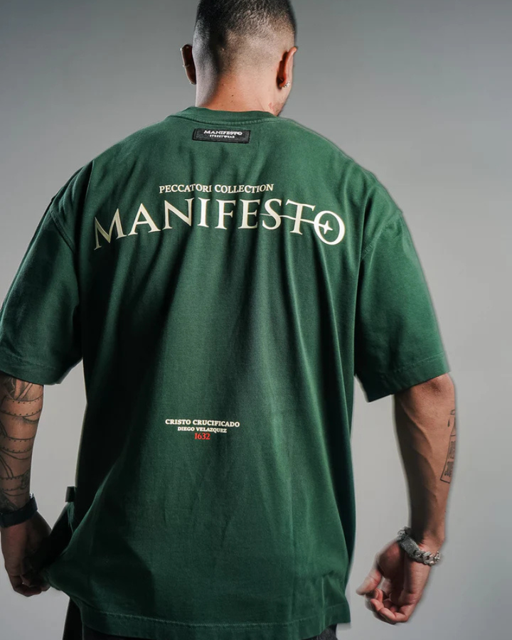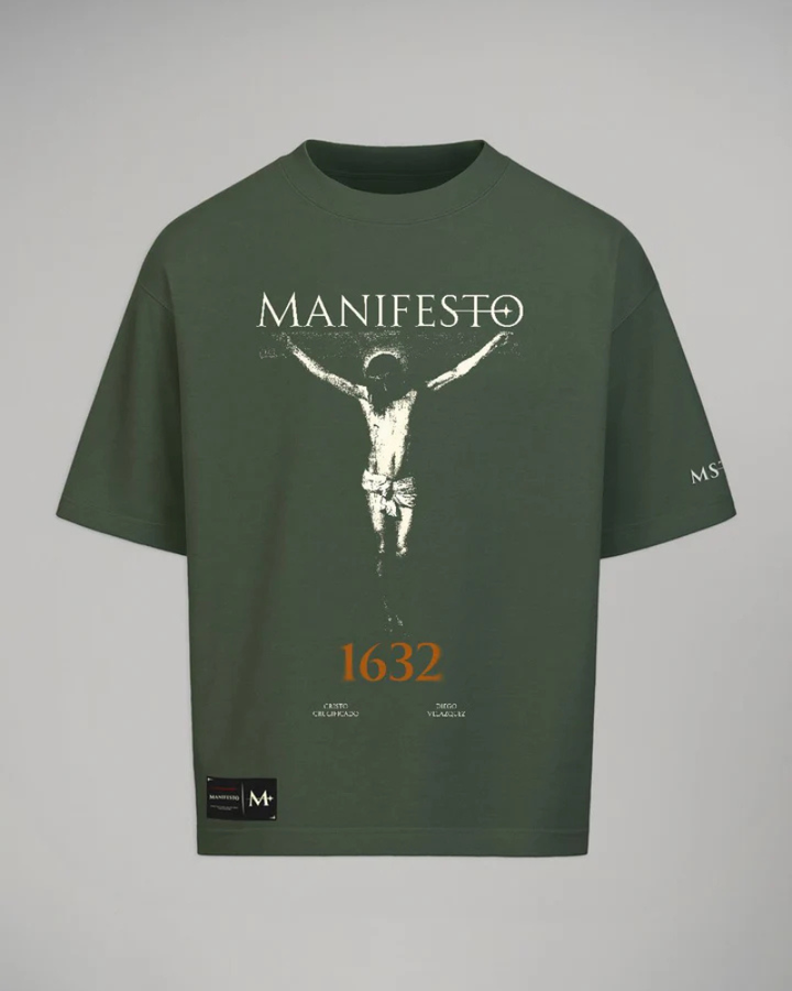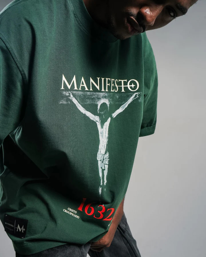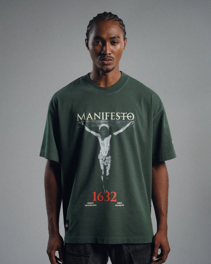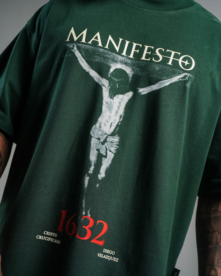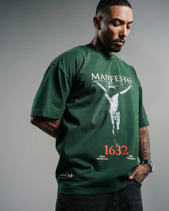 Camiseta Oversize Cristo Crucificado Verde Pino
