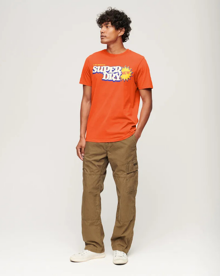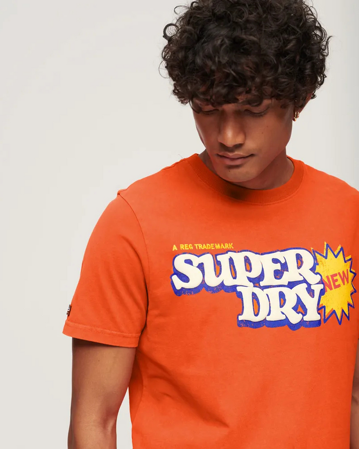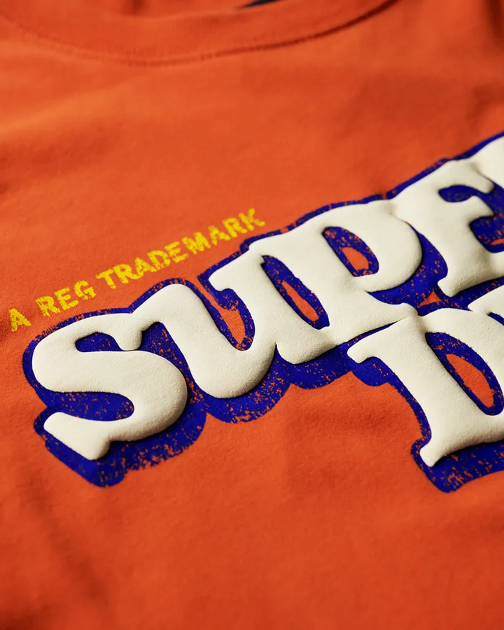 Esta camiseta, inspirada en el estilo retro de los 70, encarna el espíritu desenfadado de esa década a través de una serie de diseños auténticos que harán que puedas embarcarte en un viaje al pasado. Corte relajado: el corte clásico de Superdry. Una prenda ni muy estrecha ni muy holgada, simplemente perfecta. Elige tu talla habitual, Cuello redondo, Manga corta, Estampado con efecto desgastado, Etiqueta con el logo en las mangas.
