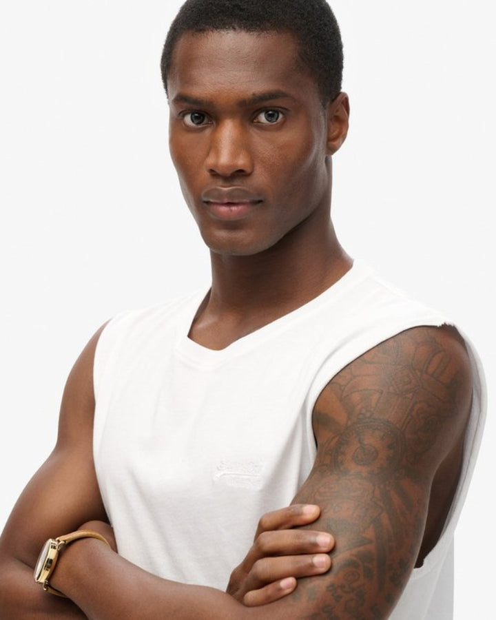 ¿Buscas una camiseta sin mangas suave, sencilla y con un toque vintage? Esta cómoda prenda es justo lo que necesitabas. Esta versátil opción se convertirá en tu básico de referencia, no solo en los días más cálidos. Corte relajado: el corte clásico de Superdry. Una prenda ni muy estrecha ni muy holgada, simplemente perfecta. Elige tu talla habitual, Cuello redondo, Sisas sin rematar, Logotipo de Superdry bordado, Etiqueta con el logotipo de Superdry.