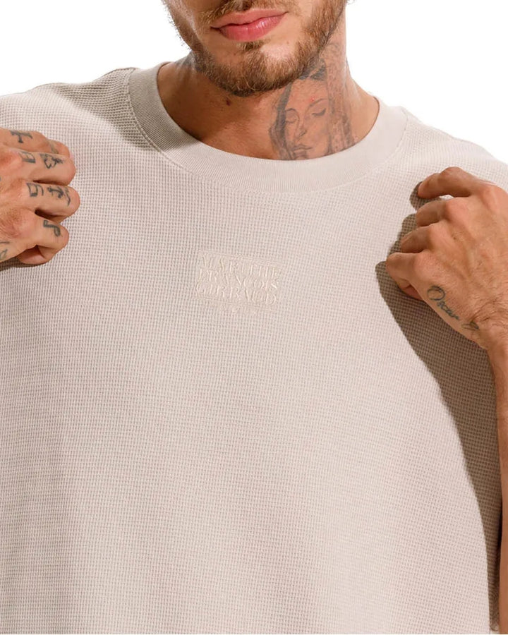 Camiseta manga corta para hombre le monarque , El modelo mide entre 1.80 y 1.85, la prenda superior es talla m y la prenda inferior es talla 32.