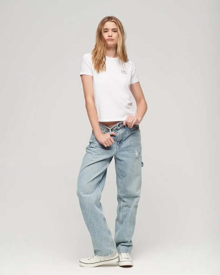 Añade un toque deportivo a tu fondo de armario con esta camiseta. Una opción emblemática para hacer toda una declaración de estilo, incluso cuando apuestas por un look informal. Combínala con tus vaqueros holgados favoritos para conseguir un look auténtico. Corte entallado: un diseño que se ajusta más al cuerpo para ofrecer un look más elegante, Cuello redondo, Manga corta, Estilo corto, Logotipo estampado, Logotipo bordado.