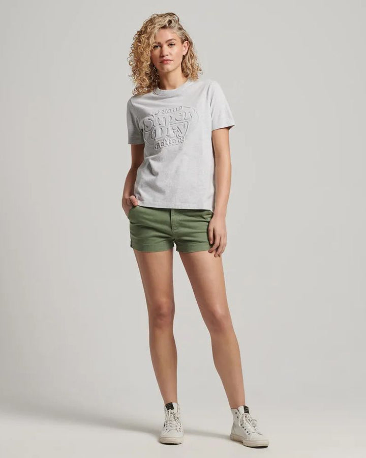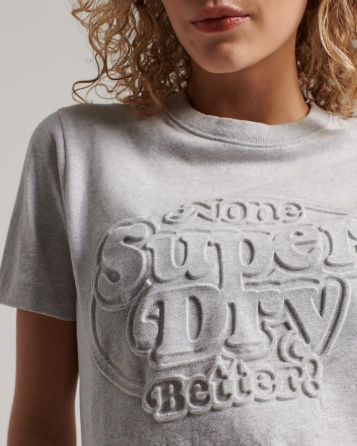 Explora nuestro emblemático logotipo con un toque de estilo nostálgico. Esta camiseta luce el emblemático logo de Superdry en su versión retro repujada, perfecto para aportar un toque atemporal y chic a tu look informal. Corte relajado: el corte clásico de Superdry. Una prenda ni muy estrecha ni muy holgada, simplemente perfecta. Elige tu talla habitual, Cuello redondo de canalé, Manga corta, Gráfico de Superdry en relieve, Etiqueta con el logotipo de Superdry.