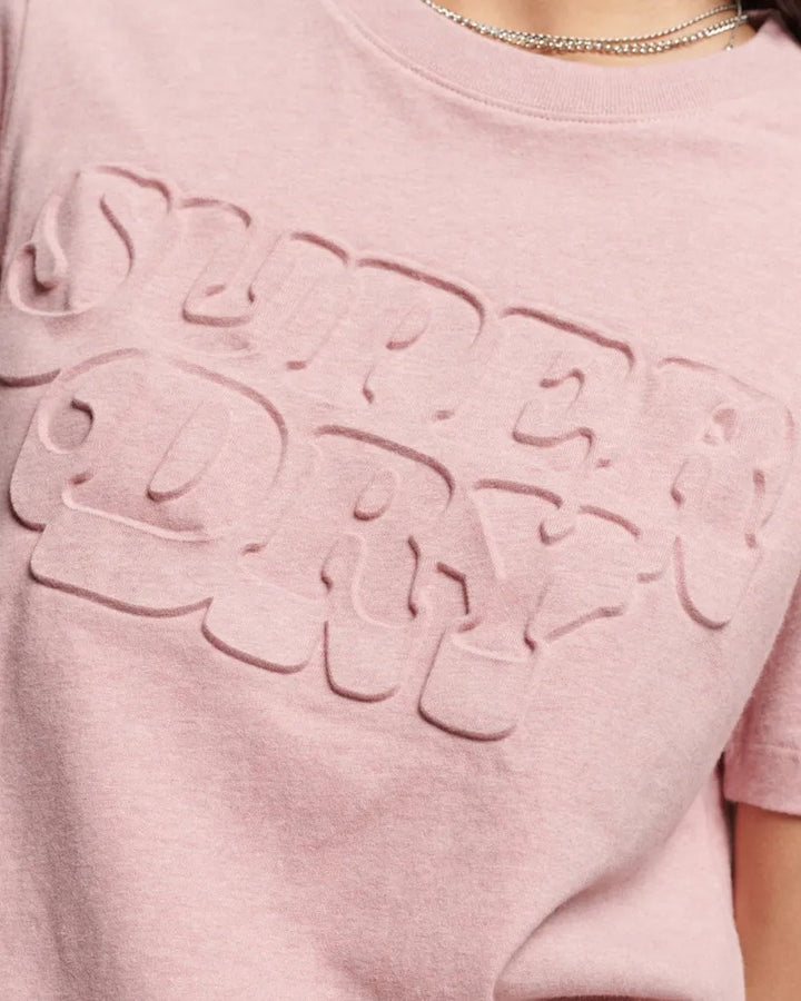 Explora nuestro emblemático logotipo con un toque de estilo nostálgico. Esta camiseta luce el emblemático logo de Superdry en su versión retro repujada, perfecto para aportar un toque atemporal y chic a tu look informal. Corte relajado: el corte clásico de Superdry. Una prenda ni muy estrecha ni muy holgada, simplemente perfecta. Elige tu talla habitual, Cuello redondo de canalé, Manga corta, Gráfico de Superdry en relieve, Etiqueta con el logotipo de Superdry.