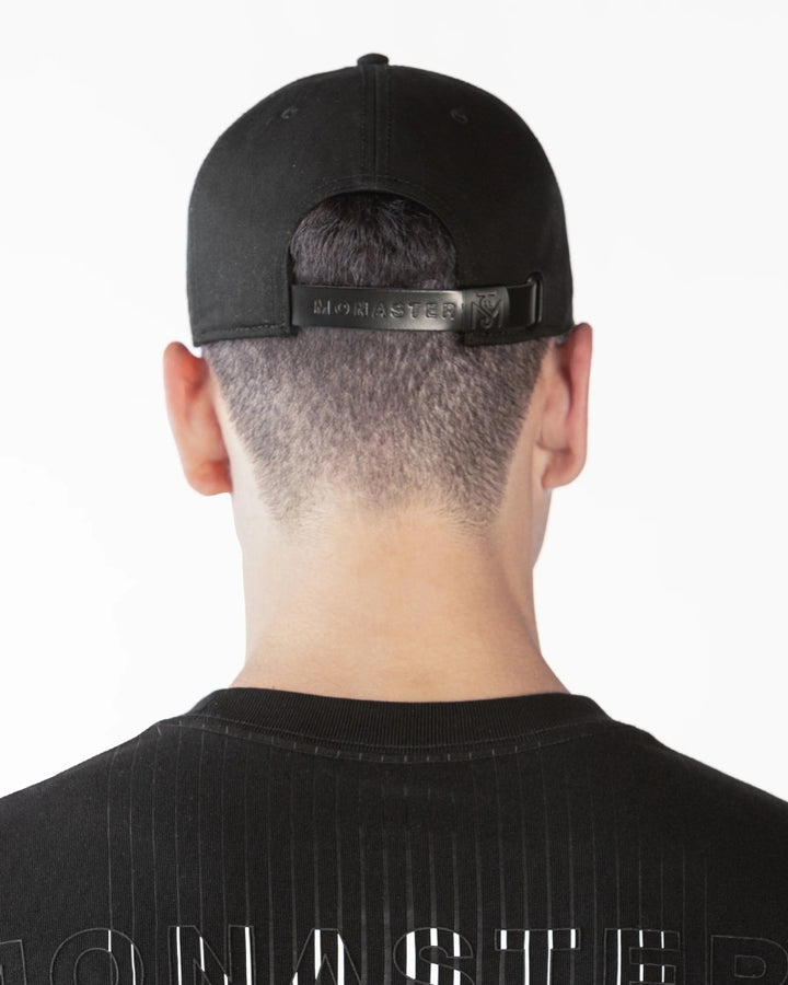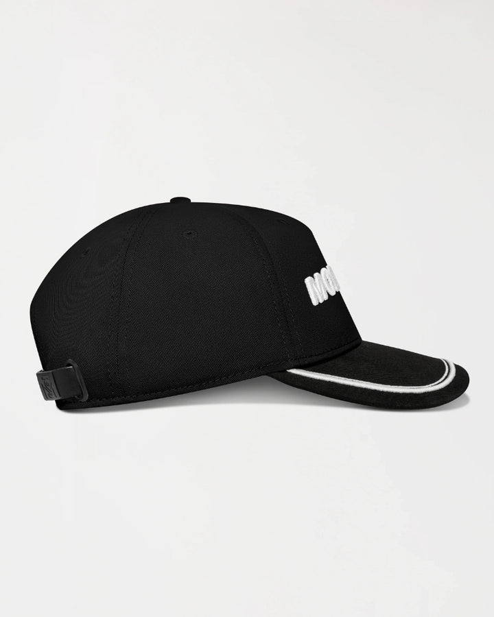 Gorra elaborada en Twill de algodón 100%, en color negro. Este accesorio es dinámico y clásico, que además cuenta con un sistema de cierre con correa en cuero 100%, con el logo de la marca repujado.