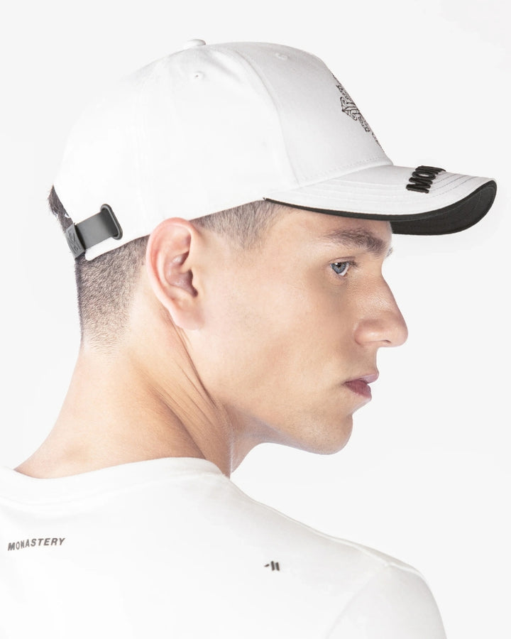 Gorra elaborada en Twill de algodón 100%, en color blanca. Este accesorio es dinámico y clásico, que además cuenta con un sistema de cierre con correa en cuero 100%, con el logo de la marca repujado.