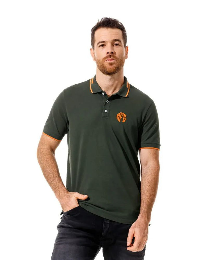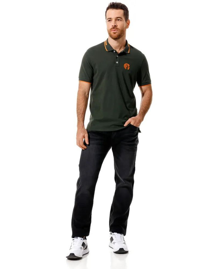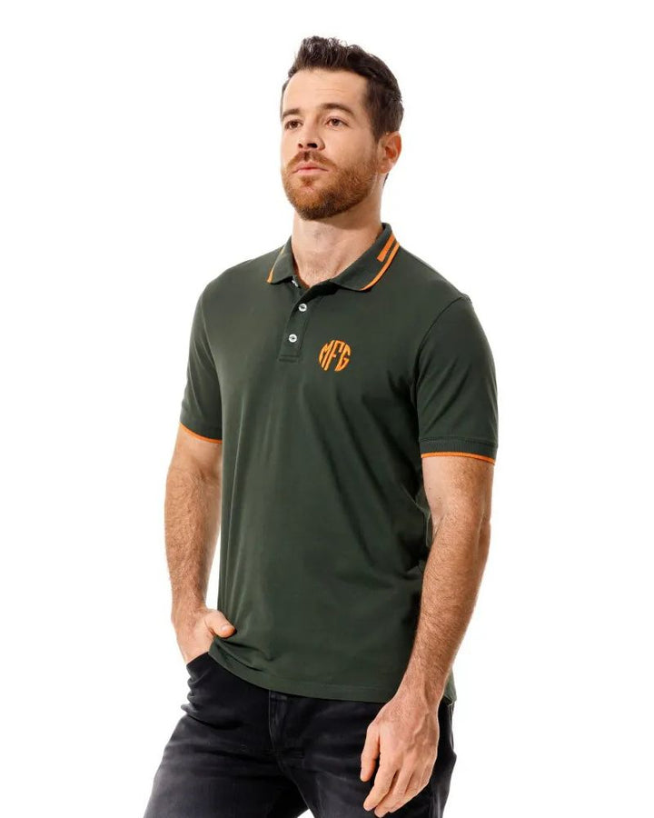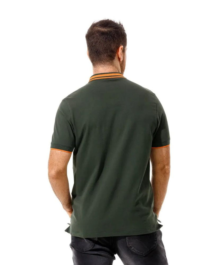 Polo con cuello tejido y perilla con botones. Bordado punto corazón, a tono con los rondos del cuello.
