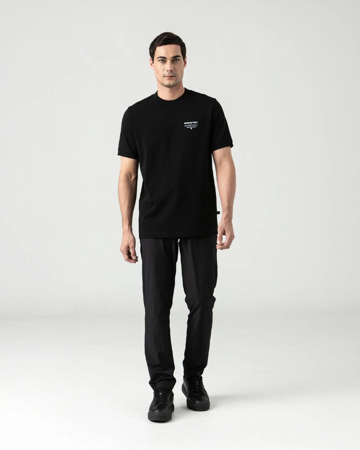Cracker 1 es una t-shirt masculina. Con silueta regular, cuello en rib de 3 cm y confeccionada en algodón de alta calidad, esta t-shirt se convierte en una declaración de estilo sutil pero poderosa. En el frente, un estampado que combina técnicas planas y de alta densidad crea un contraste visual interesante y sofisticado. La espalda cobra protagonismo con un estampado en alta densidad de mayor tamaño, que reúne varios de los emblemas más representativos de la marca, reforzando su esencia con fuerza gráfica. Una prenda pensada para quienes llevan su estilo con convicción, incluso en lo cotidiano.
