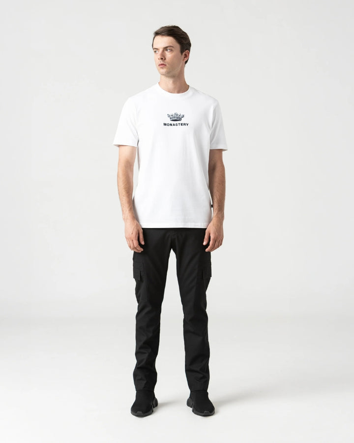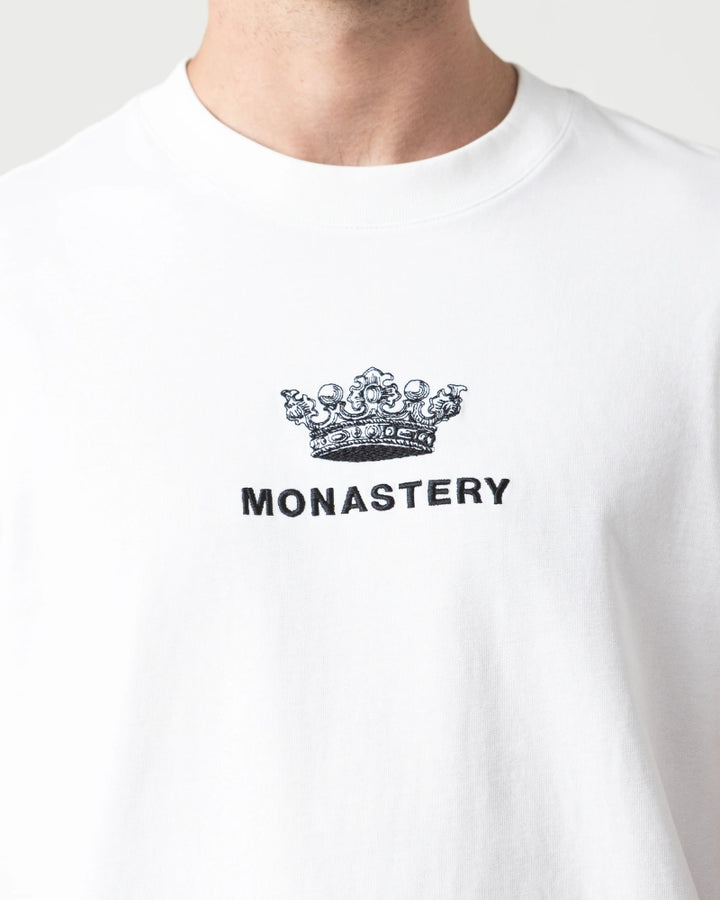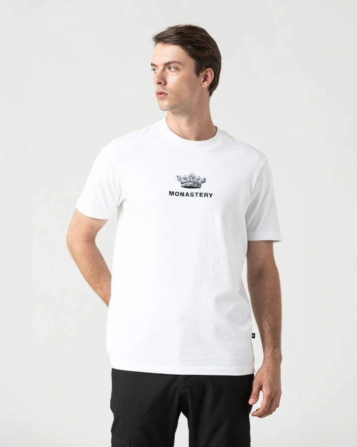 Camiseta masculina en 100% algodón exclusivo para Monastery, elaborada en silueta regular con cuello de 2,5cm, presenta arte con logo Monastery en contraste en su parte frontal bajo la técnica de bordado plano, en posterior espalda clásica con artes insignia en estampados en alta densidad. Crown es una prenda con un arte icónico renovado, haciendo este articulo fácilmente reconocible, muy versátil para combinar con tu vestuario.