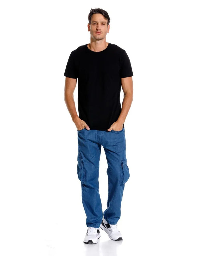Jean jogg tiro medio con bolsillos en X en delantero. Efecto lavado azul oscuro. Fit regular. Con elástico en cintura. Confeccionado en 100% algodón.