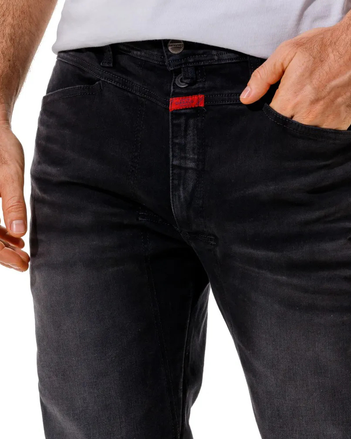 Jean New Skinny Breaker con tiro medio y bota skinny con efecto en lavandería negro.
