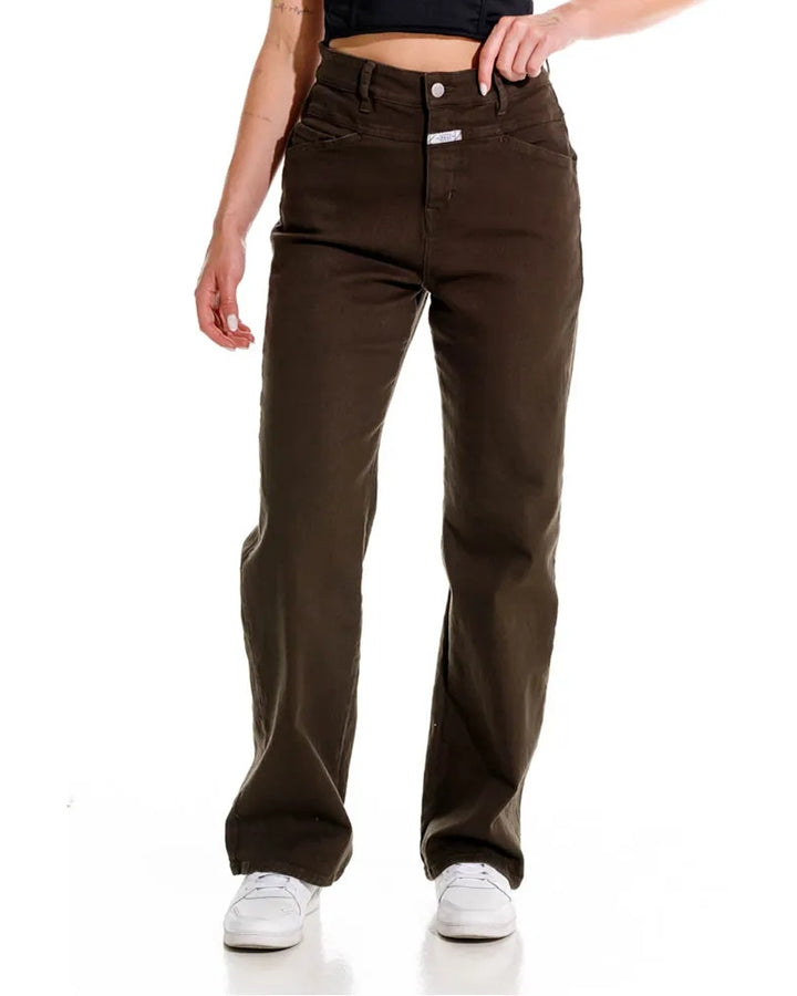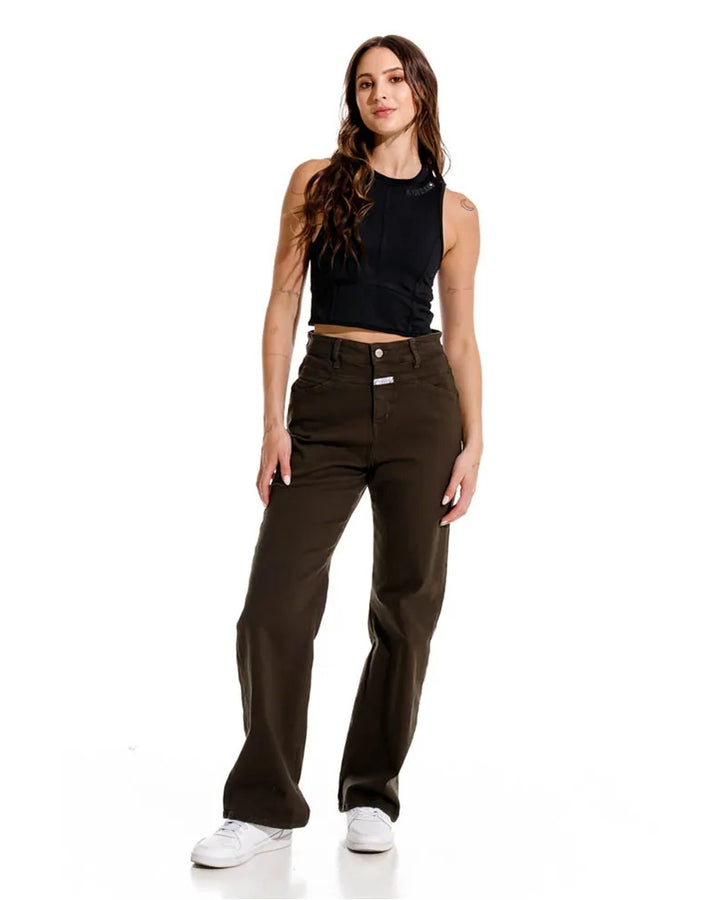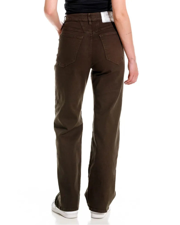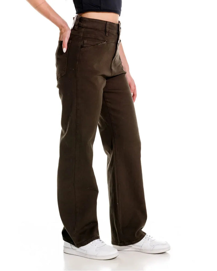 Jean Rígido Para Mujer Aurora, La modelo mide entre 1.70 y 1.75, la prenda superior es talla s y la prenda inferior es talla 6.