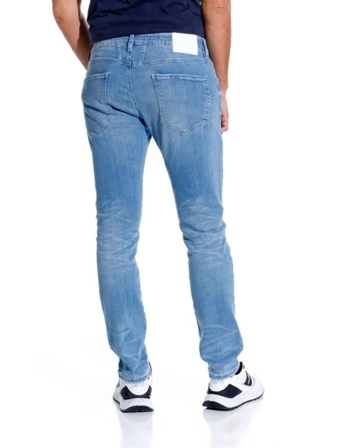 Jean new breaker tiro medio 5 bolsillos. Efecto lavado azul claro, medio y oscuro, Fit slim. Cierre frontal con botones.