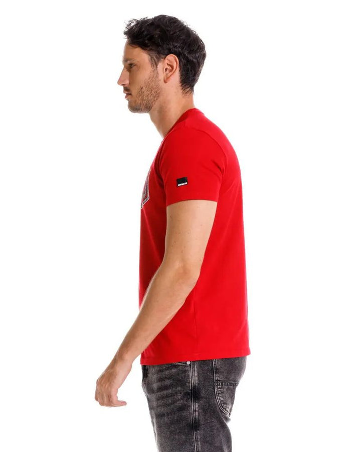 Camiseta con cuello redondo en rib y manga corta. Confeccionado en 100% algodón. Estampada en frente.