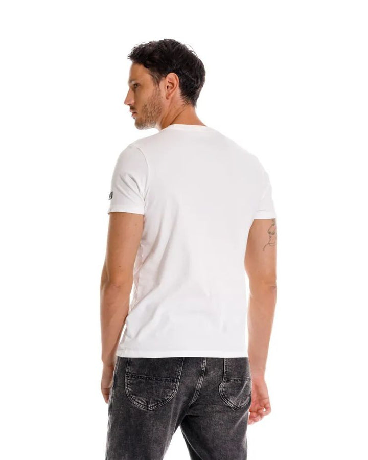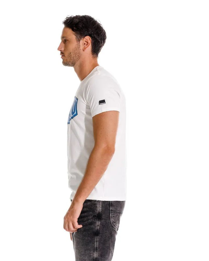 Camiseta con cuello redondo en rib y manga corta. Confeccionado en 100% algodón. Estampada en frente.