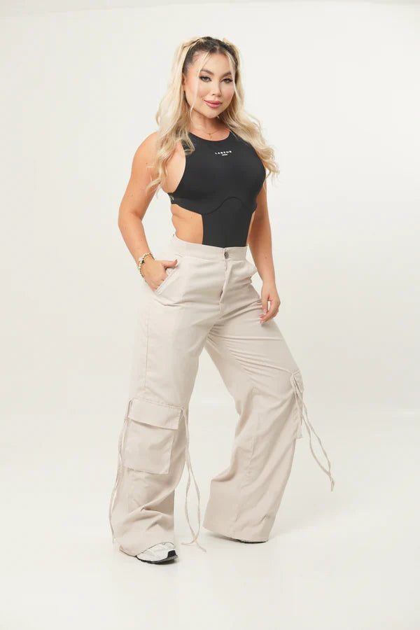 El Pantalón Sidney, es de tipo cargo y redefine el estilo urbano con su tela liviana y su silueta estructurada. Las tiras colgantes añaden ese toque audaz que hará que todas las miradas se queden en ti. ¿Lista para imponer tendencia?