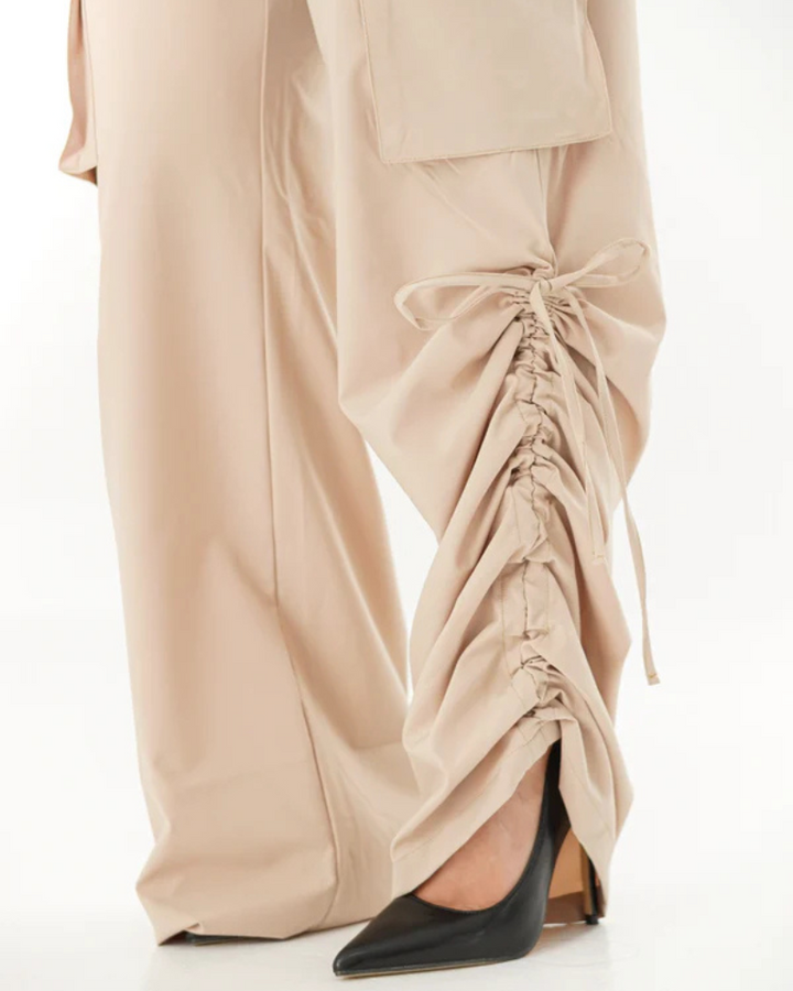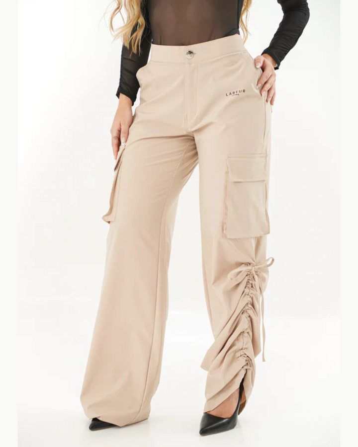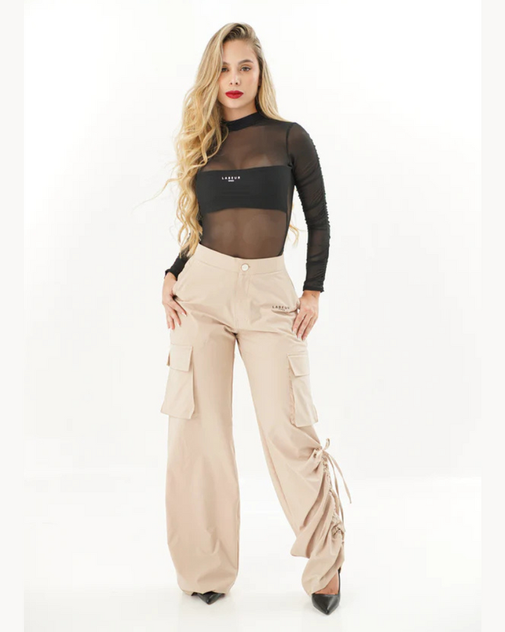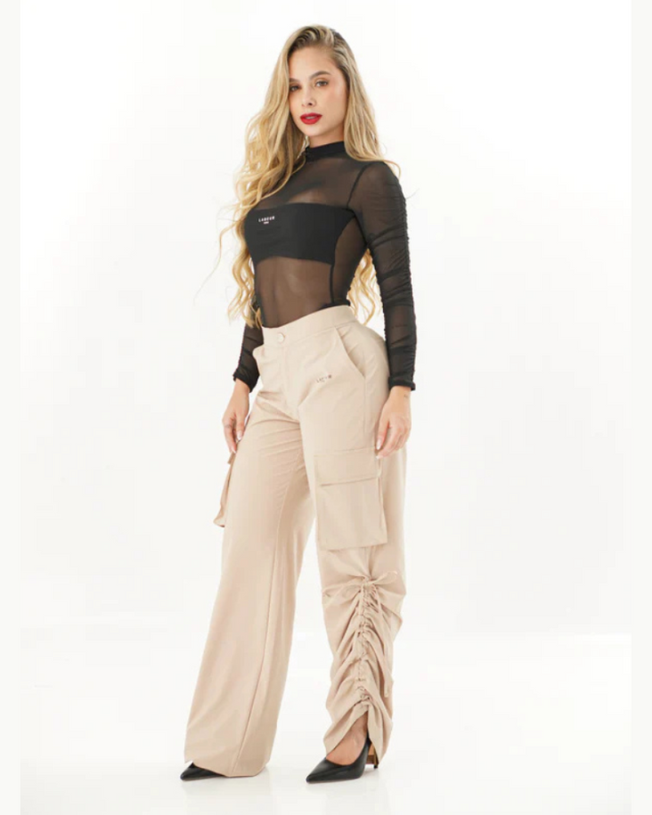 Inspirado en el poder del cargo clásico, el Pantalón Versalles trae un toque inesperado: su bota ancha con recogido en un solo lado rompe la simetría y agrega fuerza al look. Hecho en tela antifluidos, combina estética y funcionalidad.