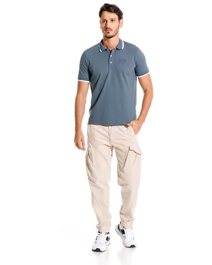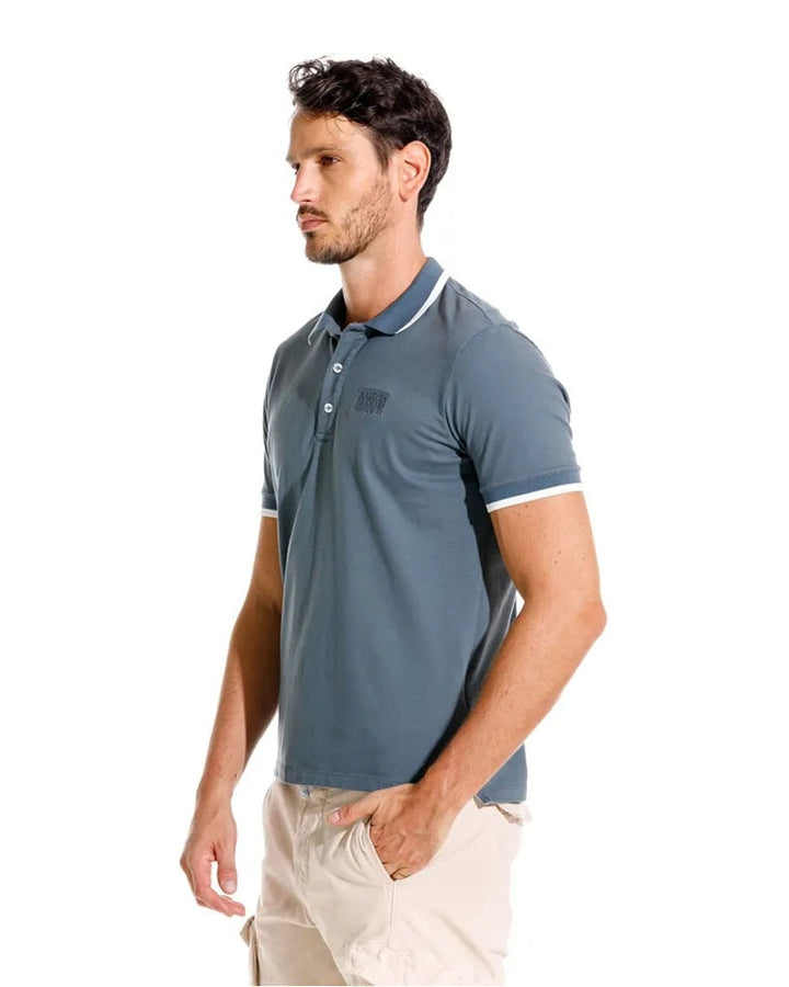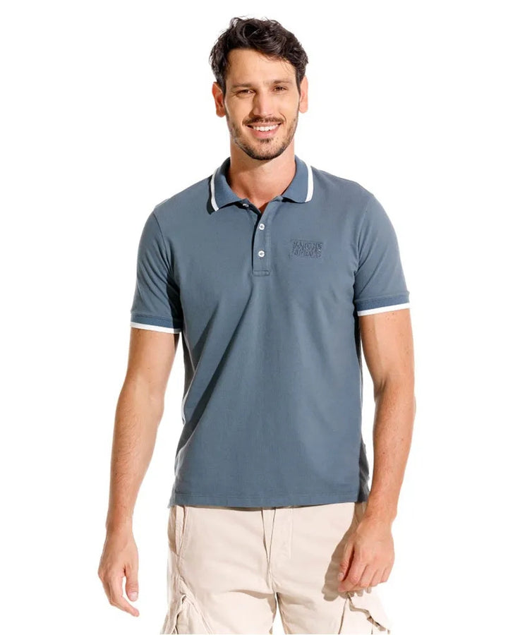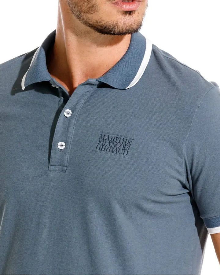Polo de botones contramarcados con cuello tejido y manga corta. Confeccionado en mezcla de algodón. Bordado en punto corazón. El modelo mide entre 1.80 y 1.85, la prenda superior es talla m y la prenda inferior es talla 32.
