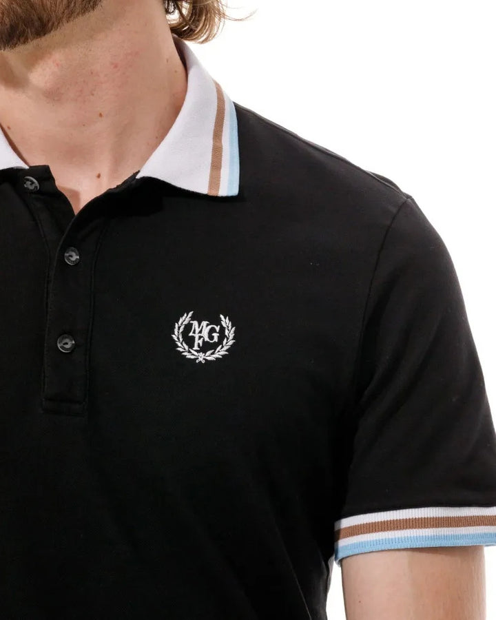 Polo de botones contramarcados con cuello tejido y manga corta. Confeccionado en mezcla de algodón. Bordado delantero en punto corazón y manga.