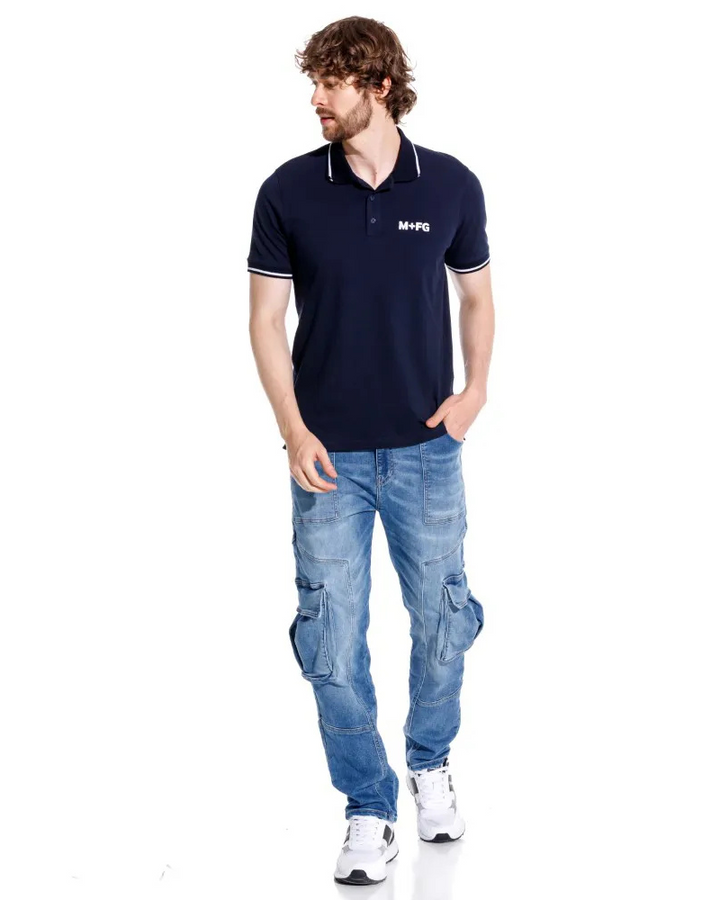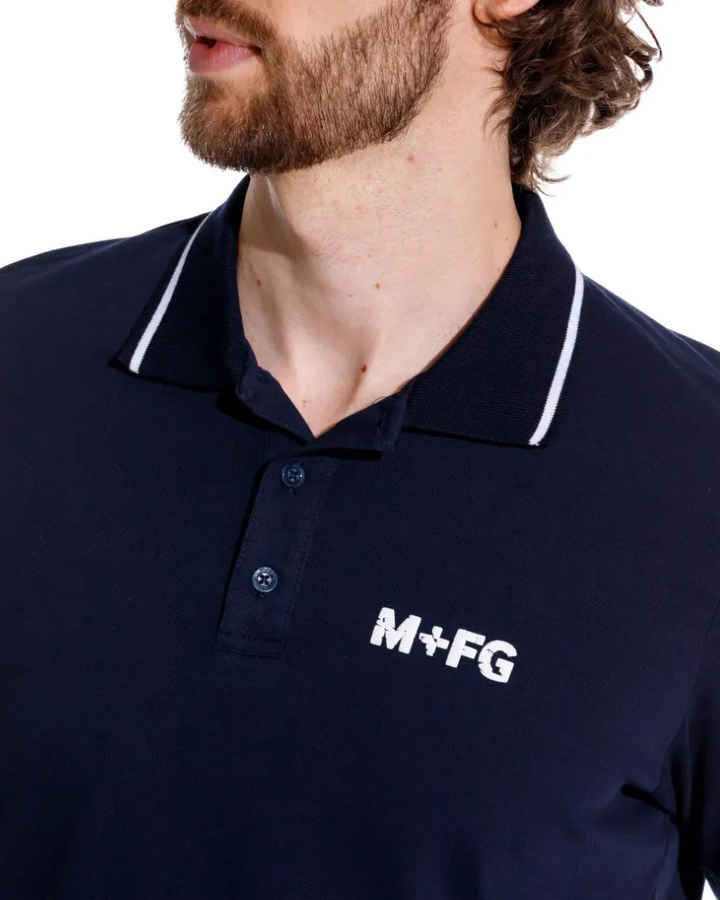 Polo de botones contramarcados con cuello tejido y manga corta. Confeccionado en mezcla de algodón. Estampado delantero en punto corazón en puf y estampado en posterior sin técnica.