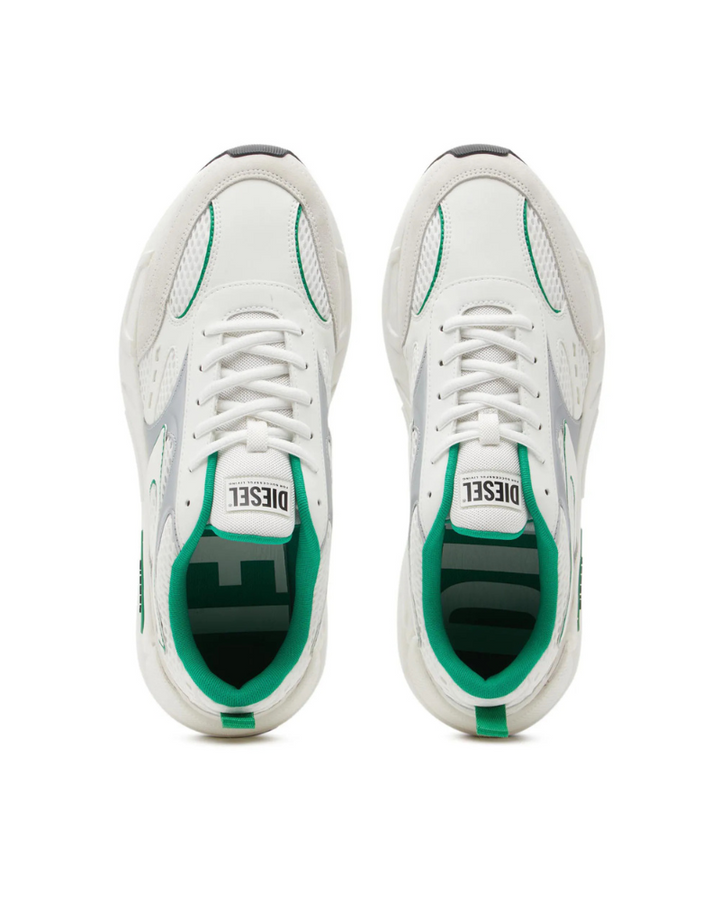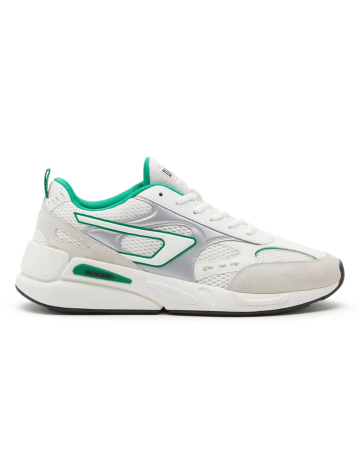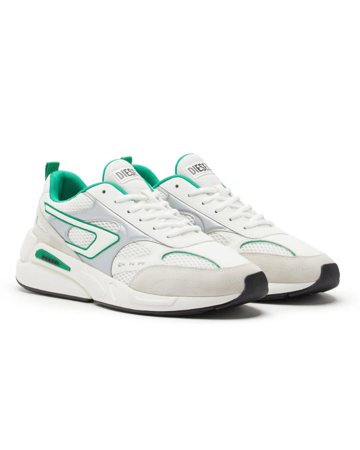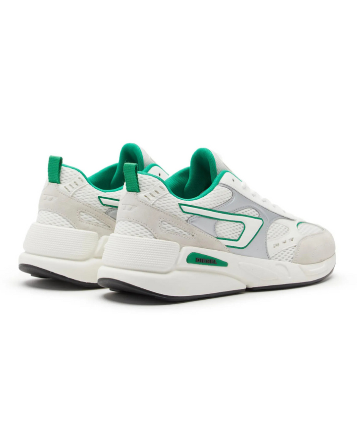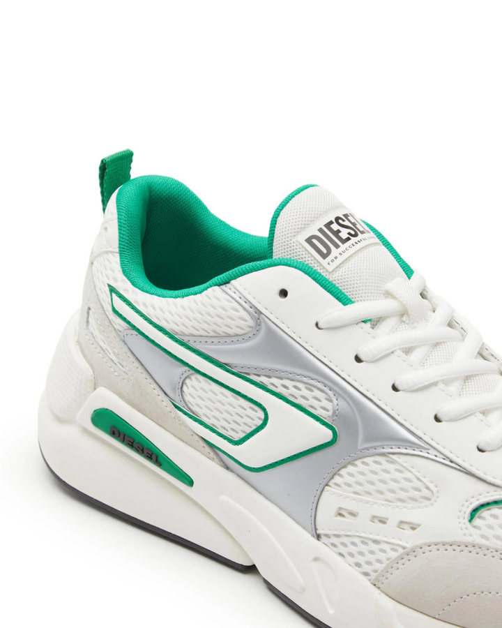 Deportivas de malla con gamuza de estilo vintage y suaves capas superpuestas acolchadas. Presentan un parche D y una etiqueta Diesel For Successful Living prensada en caliente en la lengüeta. Se asientan sobre una suela deportiva acolchada.