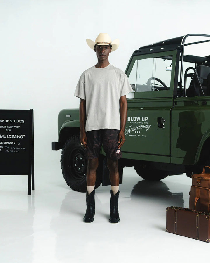 Logotipo estampado con relieve al frente y aplique de letras en tela con bordes rústicos en espalda.