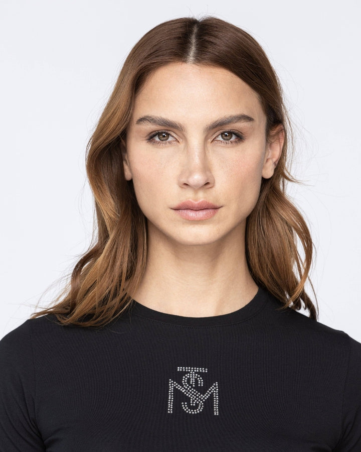T-shirt femenina elaborada con una silueta ajustada pensado para resaltar la figura femenina, es elaborada en premium cotton y elastano para mayor comodidad y frescura. Shine es una prenda diseñada con un estilo elegante que resalta por su sobriedad y sus detalles, contiene en la parte frontal un detalle decorativo compuesto por cristales, dispuestos en forma de nuestro logo TSM, añadiendo un toque de lujo y sofisticación al diseño.