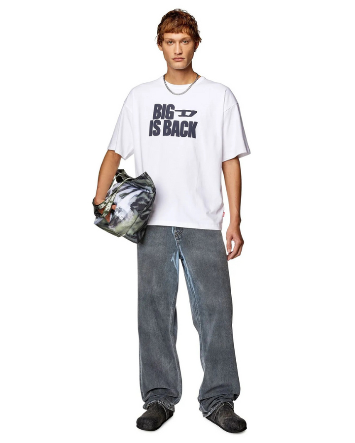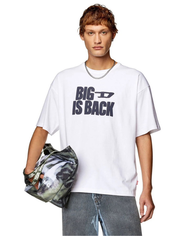 Esta camiseta para hombre de fit relaxed está Hecha de tejido de algodón grueso crudo al tacto. el pecho lleva estampado el divertido eslogan 'big d is back’ en un acabado en relieve. al comprar nuestros productos Diesel de algodón, estás apoyando nuestra inversión en la misión de better cotton.